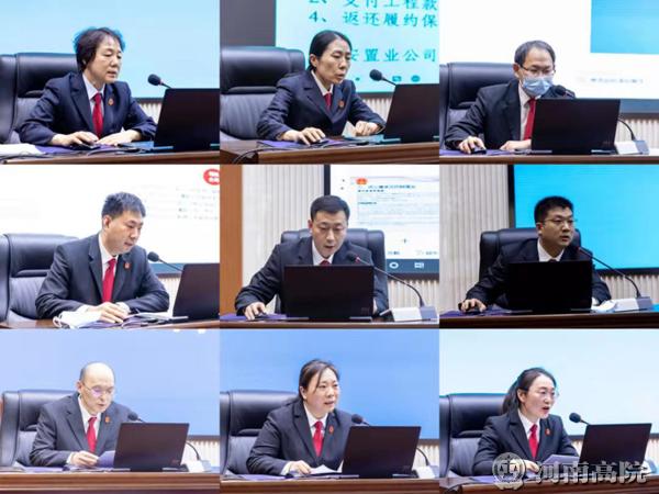3月9日下午,省法院组织召开全省法院建设工程和房地产条类案件先行判决视频调度会,省法院民四庭全体干警、审判管理办公室和宣教处代表及开封、许昌、新乡三个中院主管副院长、庭长在主会场参加会议,全省各中、基层级法院条线部门在各自分会场以远程视频方式参会,省法院党组成员、副院长郭保振出席会议并作总结讲话。