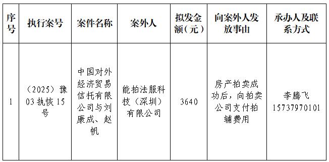 特别提示:公示期满3个自然日后,如无人提出异议,则该案款将向公示案外人发放,监督电话:0379-63369730。