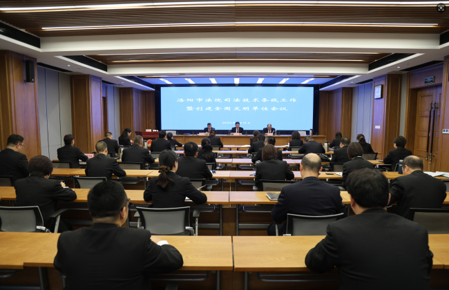 2026年4月16日上午洛阳法院召开司法技术条线会议。市中院党组成员、副院长王振中、基层法院主管司法技术条线主管院长、立案部门负责人、洛阳法院司法技术条线全体工作人员参会。