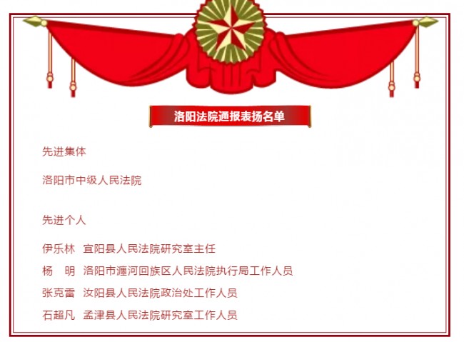 喜报!洛阳法院4个集体11名个人获省法院表彰